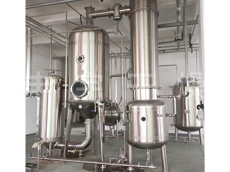 薄膜蒸發(fā)器機(jī)組由蒸發(fā)器、汽液分離器,預(yù)熱器三個(gè)主要部件和一只簡(jiǎn)易分離器組成,蒸發(fā)器為升膜式列管換熱器。該蒸發(fā)器具有生產(chǎn)能力大、效率高、物料受熱時(shí)間短等特點(diǎn),適用于制藥、食品、化工等行業(yè)的稀溶濃縮,本設(shè)備與物料接觸部分均采用OCr19Ni9不銹鋼制造,具有良好的耐腐蝕性能經(jīng)久耐用,符合藥品衛(wèi)生要求。