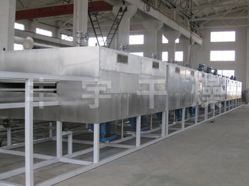 概述: 該機(jī)是穿流連續(xù)式干燥設(shè)備,用于透氣性較好的片狀、條狀、顆粒狀物料的干燥,對(duì)于脫水蔬菜、中藥飲片等類含水率高、而溫度不允許高的物料尤為合適;該系列干燥機(jī)具有干燥速度快、蒸發(fā)強(qiáng)度高、產(chǎn)品質(zhì)量好的優(yōu)點(diǎn),對(duì)脫水濾餅狀的膏狀物料,需經(jīng)造?;蛑瞥砂魻詈笠嗫筛稍铩TO(shè)備流程工藝:特點(diǎn):● 可以調(diào)節(jié)空氣量、加熱溫度、物料停留時(shí)間及加料速度以取得佳干燥效果?!?設(shè)備配置靈活,可使用網(wǎng)帶沖洗系統(tǒng)及物料冷卻系統(tǒng)?!?···